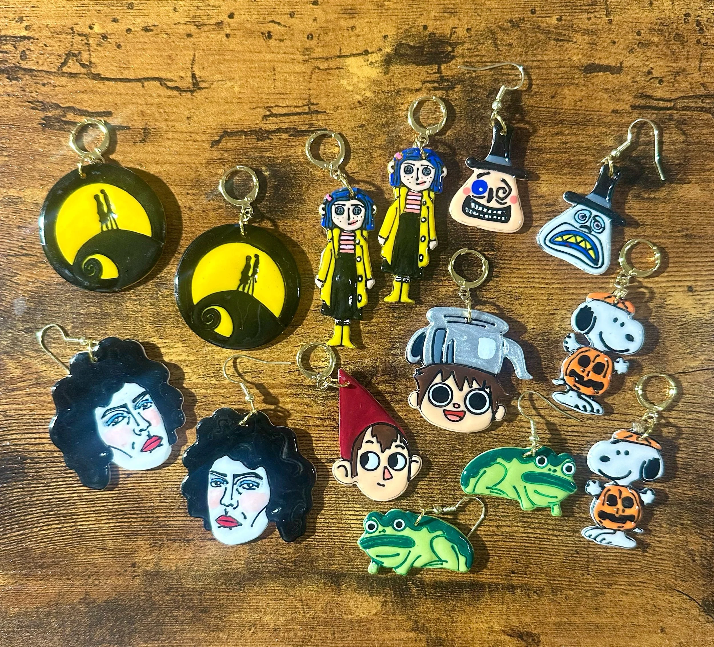 Categories: All Pee-Wee :) Magnets Vent Clips Wild Life Nostalgia Pins Autumn Rings Necklaces Halloween Cards Prints Earrings All / Halloween Grunkle Stans $26.00 Bill Cyphers $25.00 Waddles Earrings $25.00 Mabel & Dippers $26.00 Circus Mice $25.00 Other Mothers $25.00 Coraline Keys $18.00 Caspers $25.00 Blue Velvet Ear-rings $30.00 Precious Baskets $30.00 Coraline Charm Necklace $30.00 David Lynch Pins $12.00 Halloween Charm Necklace $30.00 Slimers $25.00 Redrum Earrings $24.00 Witchy Fishies $24.00 Spiderweb Studs $10.00 Lovely Pumpkins $20.00 I Want to Believe Earrings $26.00 Boo Bucket Trios $26.00 Jaws Earrings $26.00 Pink Creatures $26.00 The Blob Earrings $25.00 Moon & Star Beaded Drops $24.00 Nosferatu Earrings $25.00 Spooky Carebears $25.00 Tiny Ghost Studs $8.00 Halloween Pumpkin Studs $8.00 Wolfmans $25.00 Draculas $25.00 Pumpkin Daisies $25.00 Vampire Bats $24.00 Jason Masks $24.00 Trick or Treat Baskets $22.00 Raccoons $12.00 Audrey IIs $28.00 Glowing Ghost Cats $26.00 Witchy Pumpkins $18.00 Sandworms $26.00 Blushing Ghosts $24.00 The Mayors $24.00 Pumpkin Snoopys $26.00 Coraline Dolls $26.00 Frank n Furters $26.00 Jack & Sally Moons $25.00 Frog OTGW Earrings $24.00 Wirt & Greg Earrings $25.00 Black Cats $12.00 Skull Statement Earrings $20.00 Spooky Moon Earrings $16.00 Ouija Board Planchette $18.00 Pink Ghost Faces $18.00 UFO Abductions $25.00 Glow in the Dark/Glitter Aliens $24.00 ET Face Earrings $25.00 Mulder & Scully $26.00 Scooby Earrings $25.00 Creature Earrings $26.00 Gizmos $26.00 Sold out Witchy Boo Buckets $25.00 Stay Pufts $25.00 Ghost Cookie Ring $10.00 Pumpkin Cookie Ring $10.00 Bat Ring $10.00 Jack Ring $10.00 Jack o’ Lantern Ring $10.00 Ghost Ring $10.00 Stay Puft Necklace $12.00 Ghost Face Necklace $12.00 Sally Necklace $15.00 Death’s-Head Hawkmoth Necklace $15.00 Zero Necklace $15.00 Jack o’ Lantern Necklace $15.00 The Monsters $25.00 Gravestone Studs $8.00 Black Glittery Bats $24.00 Green Floral Bats $24.00 Ghost Boo Buckets $25.00 Pumpkin Boo Buckets $25.00 Sallys $25.00 Witchy Furbies $26.00 Sold out Lydias $25.00 Little Zeros $12.00 Zeros $24.00 Mouse Pumpkin Hoops $15.00 Spooky Trolls $18.00 Black & Orange Scalloped Drops $24.00 Autumn Leaves $8.00 Orange Dangly Drop Earrings $26.00 Jack o’ Lantern Heart Hoops $15.00 Floral Witch Hats $18.00 Ghost Faces $18.00 Death’s-Head Hawkmoths $26.00 Hot Pink Jack o’ Lanterns $10.00 Hot Pink Skulls $10.00 Witch Hat Studs $8.00 Black Jack o’ Lanterns $10.00 Beetlejuices $25.00 Gambling Boogie Mans $26.00 Sold out Glow in the Dark Skulls $10.00 Orange Jack Studs $10.00 Alien Studs $10.00 Lock Shock and Barrel Gift Set $30.00 White & Gold Pumpkins $16.00 Spiderweb Earrings $24.00 Ghost Cowgirls $26.00 Candy Corn Studs $10.00 Halloween Sugar Cookies $12.00 Glow in the Dark Ghost Studs $10.00 Jack O’ Lantern Earrings $15.00 Custom requestsHave something specific in mind? Send me a message! :) Contact me