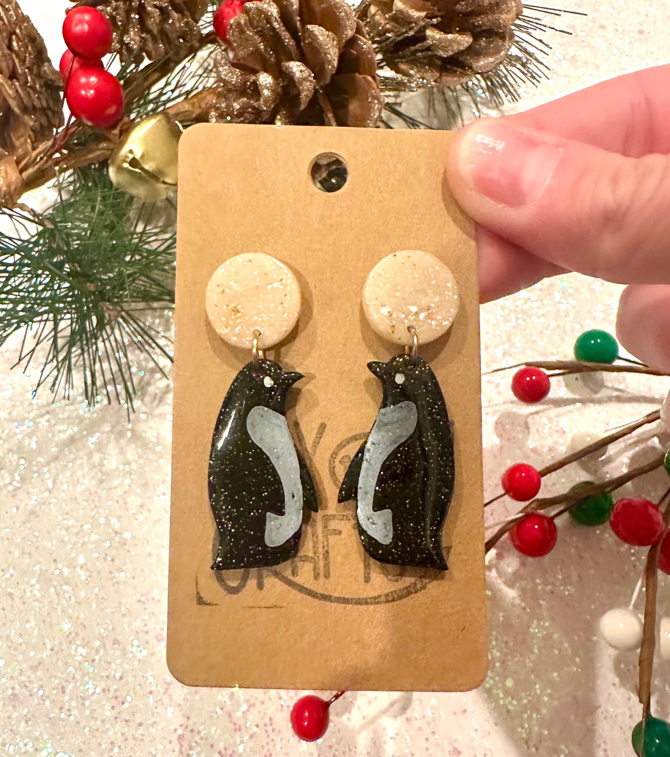 Who doesn’t love penguins? 🐧 These earrings are a perfect gift for yourself or a loved one! They are hand painted and made of clay topped with resin, with metal findings brass and iron. Extremely lightweight and super cute! 😊♥️