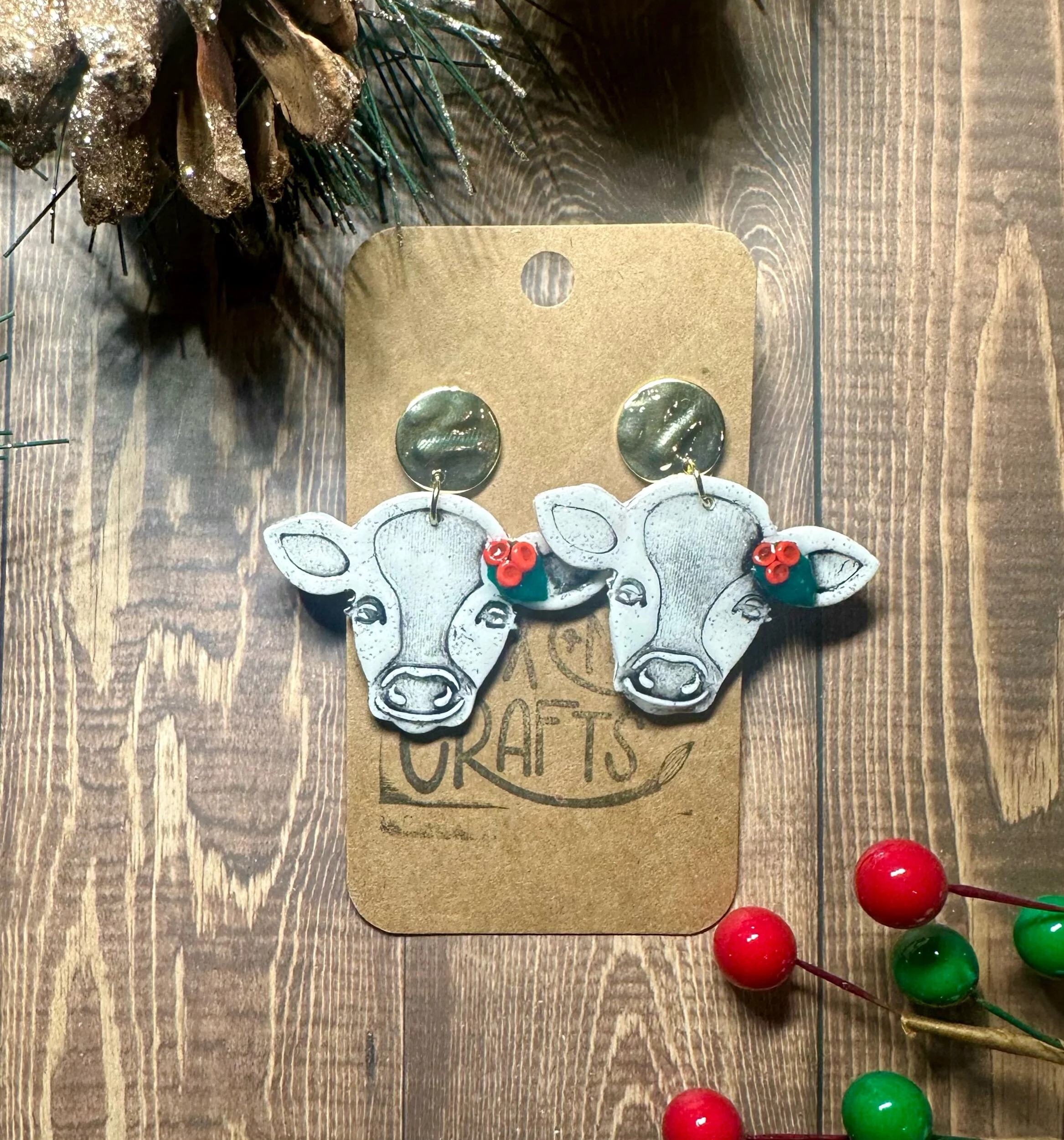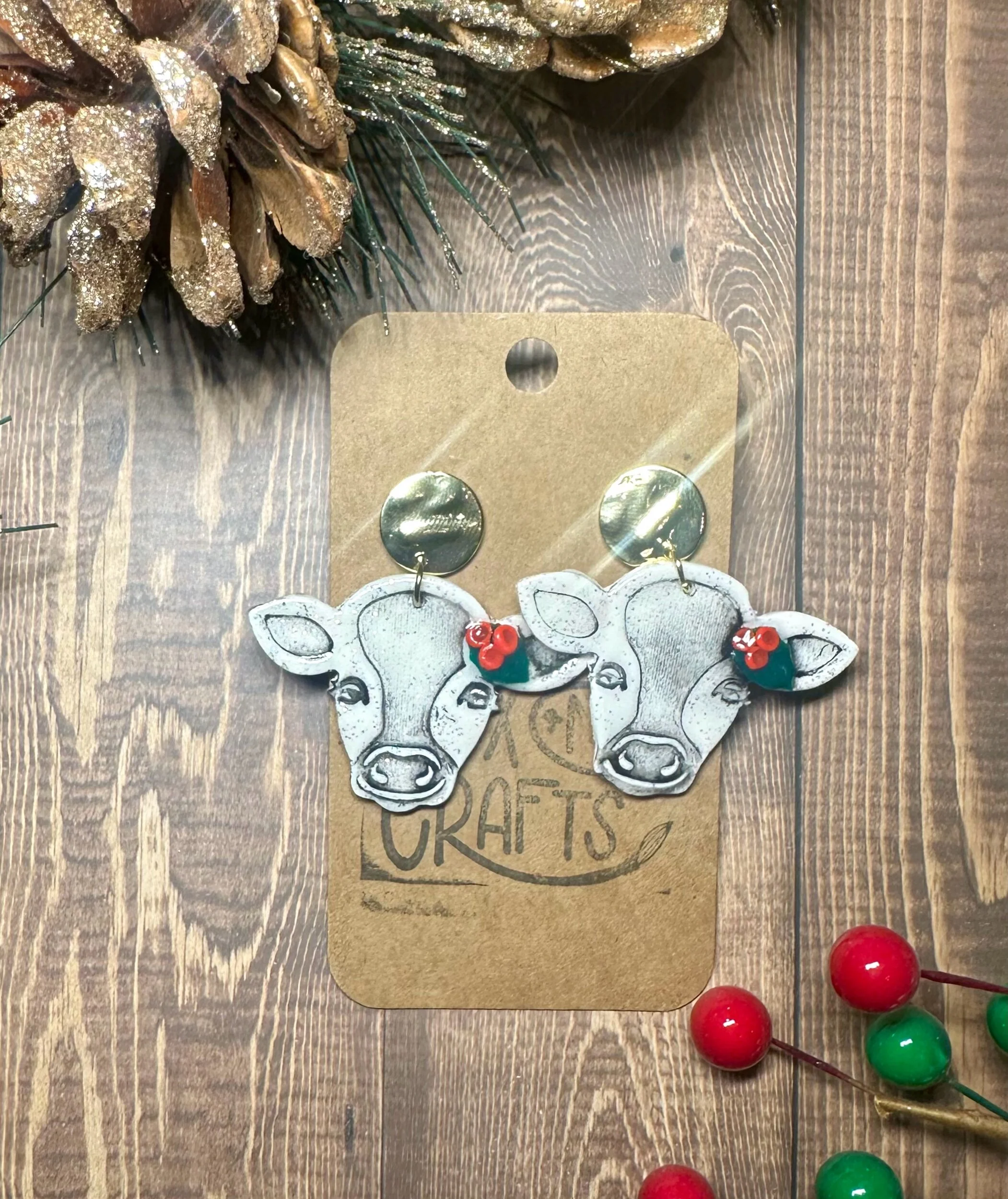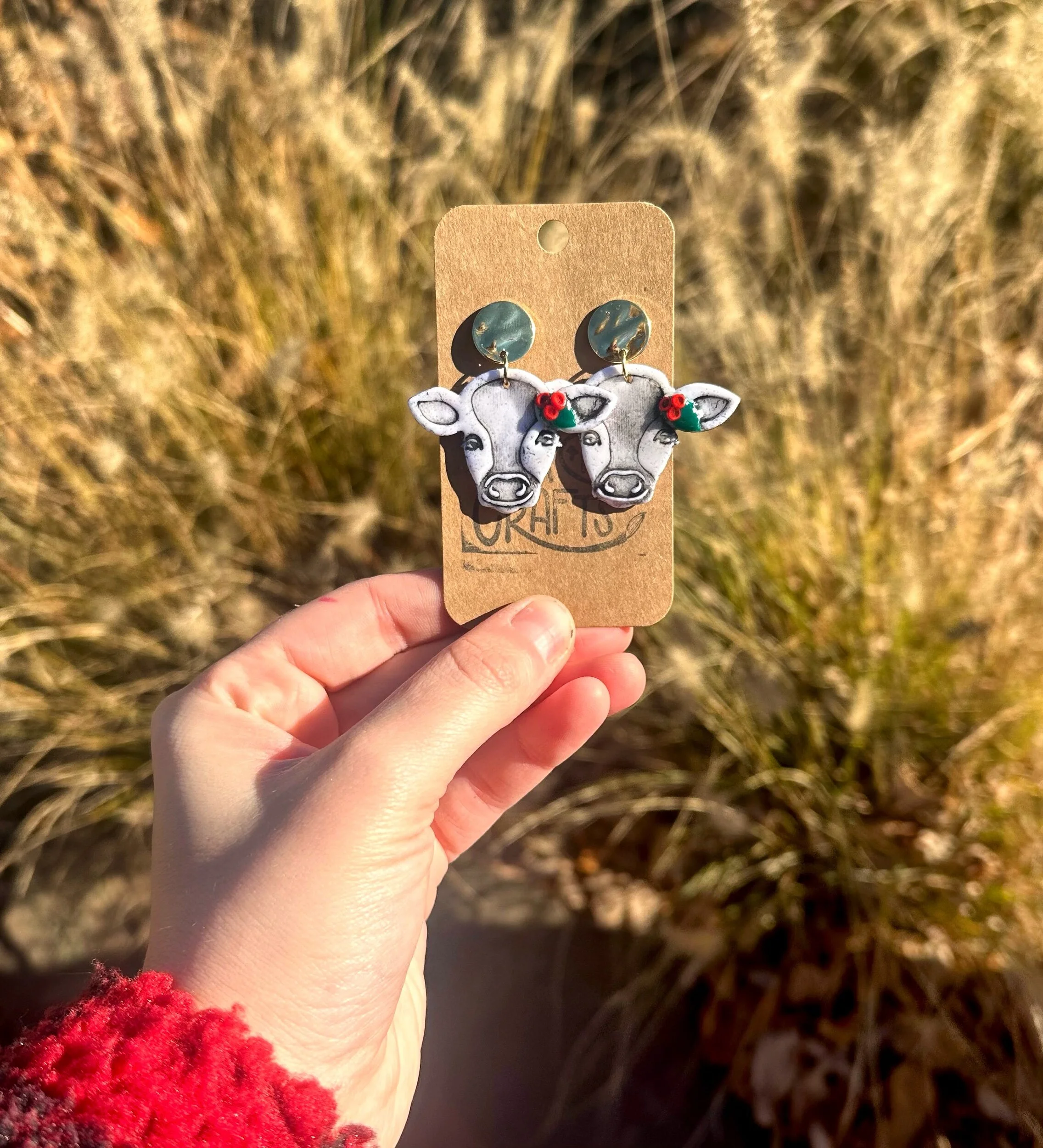 Mooey Christmas! 🐄🎄🩷 These handmade statement earrings are made of clay, topped with resin with a gold plated stainless steel post! They are super lightweight a perfect gift for you or a friend! 😊♥️