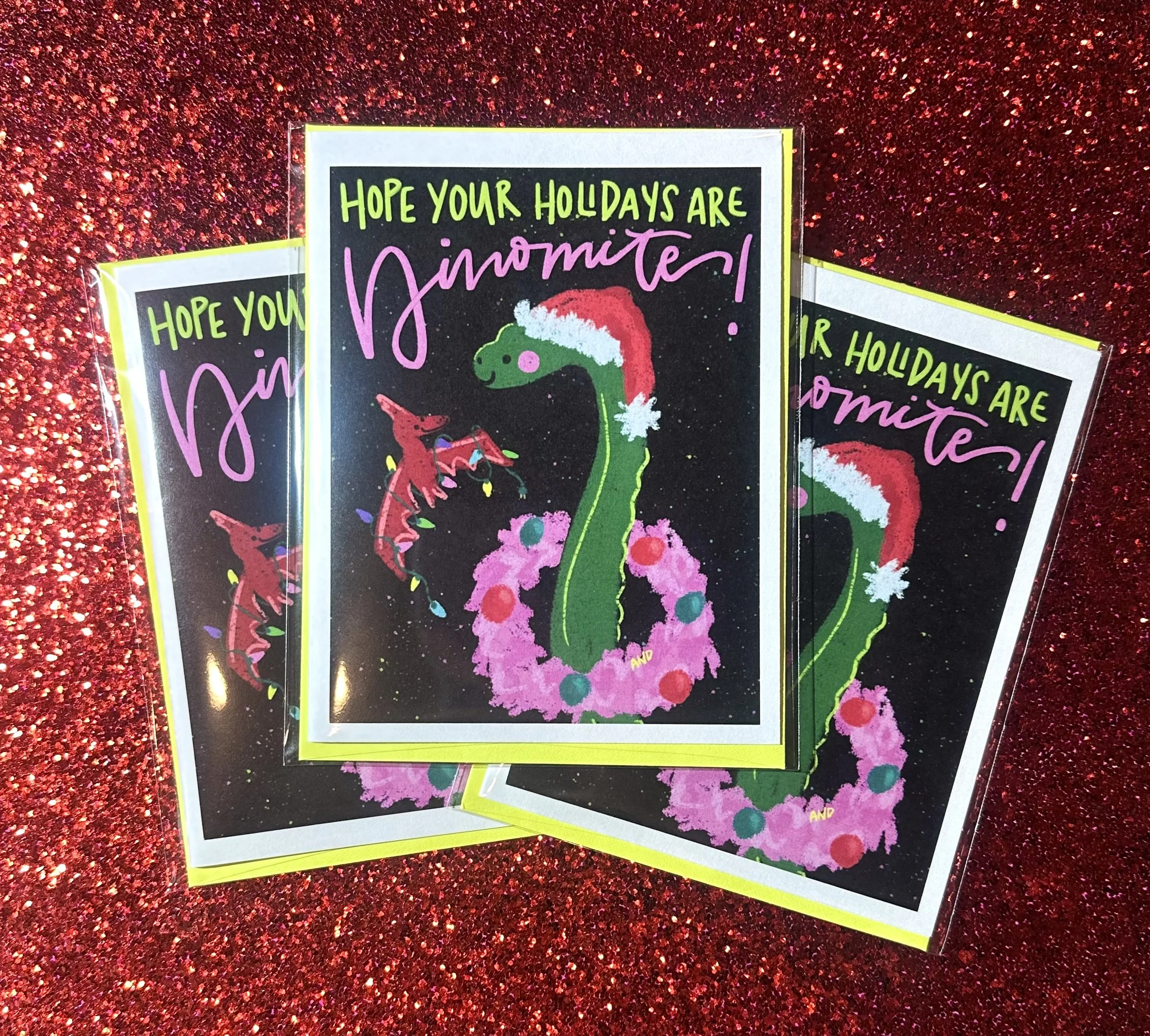 Spreading cheer since the dawn of time!! π¦ These adorable A2 sized cards feature a design hand painted by me! They are blank inside and come wrapped in cellophane with an envelope. A perfect note to share with someone you care! π©·